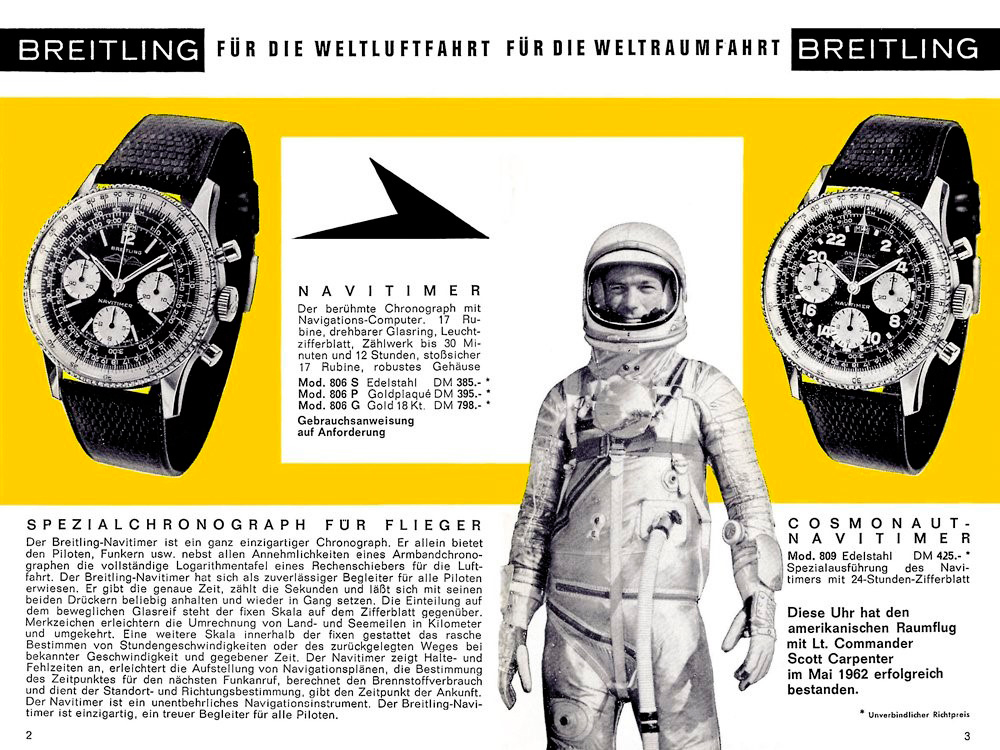 В 1962 году выпущена новая версия модели Navitimer. В разработке ее дизайна принял участие астронавт Скотт Карпентер. Важной особенностью модели стал 24-часовой циферблат. Этими часами Карпентер пользовался на борту космического корабля «Аврора 7».