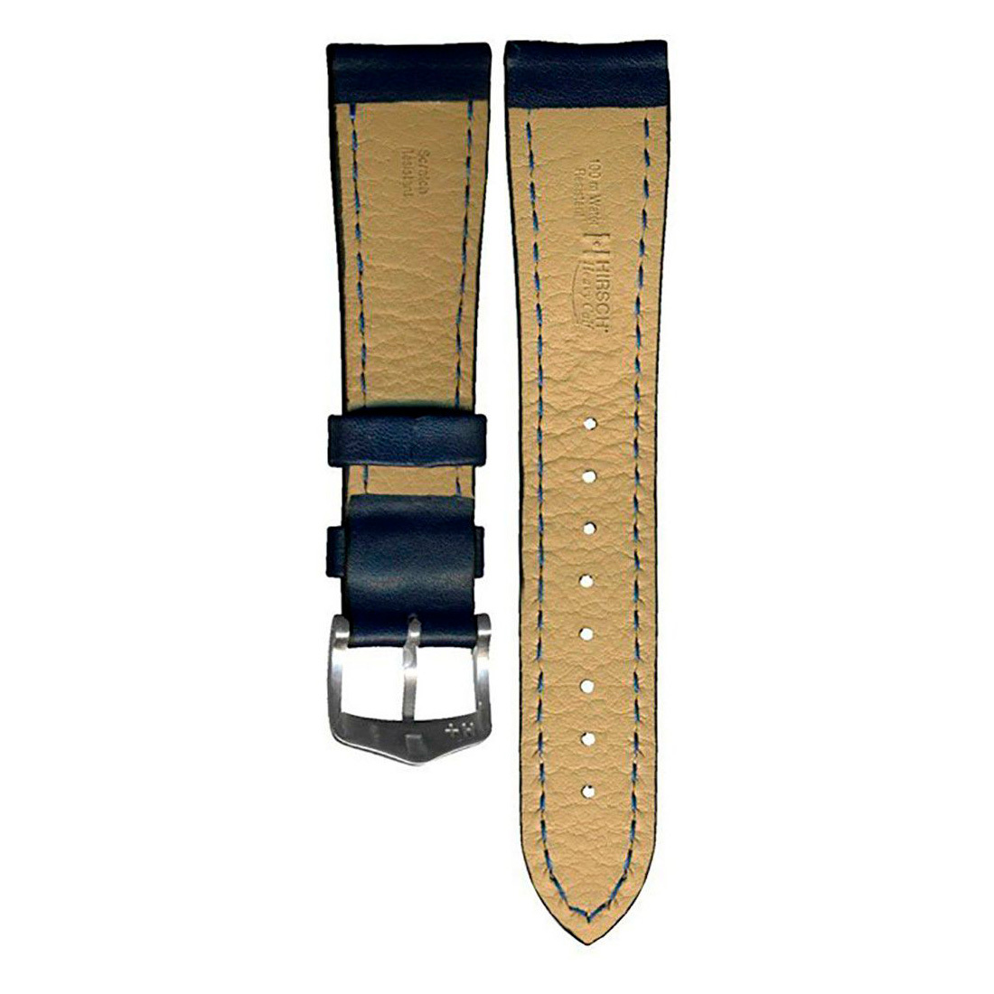 Описание: Крепкий и массивный ремешок из гладкой итальянской телячьей кожи. Толстый спортивный шов белого цвета. Края залакированы вручную в три слоя. Это особо прочная кожа со специальным покрытием. Такие ремешки особо устойчивы к царапинам. Ремешок выполнен по технологии Ремборде - это бесшовное соединение верхней и нижней подкладочной кожи, что гарантирует оптимальную защиту от внешнего воздействия и долговечность. Подкладочная кожа HIRSCH Oysterglove Supersoft. HIRSCH 100 m Water-Resistant. Толщина: от 3 до 6.8 мм к корпусу часов. Цвет - синий.
