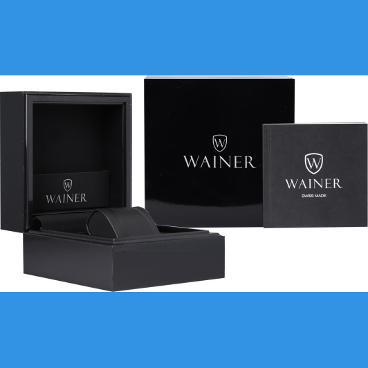 Корпус: Круглый корпус из нержавеющей стали 316L с частичным PVD покрытием. Циферблат зелёного цвета, защищен устойчивым к царапинам сапфировым стеклом и украшен фирменным логотипом Wainer. Тонкие заостренные прямоугольные стрелки. Метки в виде штрихов. Рифленая заводная головка. Диаметр корпуса 44 мм. Водонепроницаемость 50 метров.