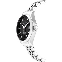 Корпус: Корпус из нержавеющей полированной/матовой стали. Чёрный циферблат украшен узором "гильоше", три бриллианта на "12 часов". Стрелки и риски серебристого цвета. Сапфировое стекло. Диаметр 34 мм. Водостойкость 200 м. Система DS.