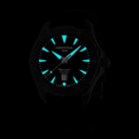 Корпус: Корпус из нержавеющей стали. Сапфировое стекло с антибликовым покрытием. Черный циферблат, стальные стрелки и часовые индексы. Вращающийся безель. Диаметр 34,3 мм. Водонепроницаемость 300 метров.