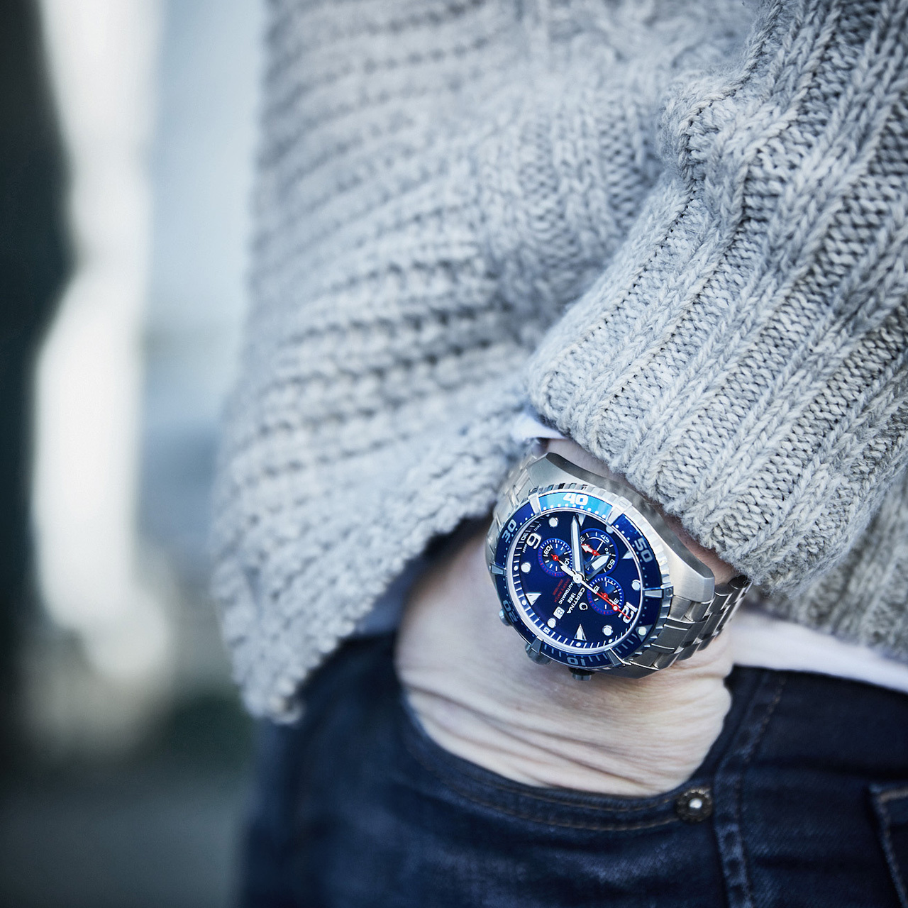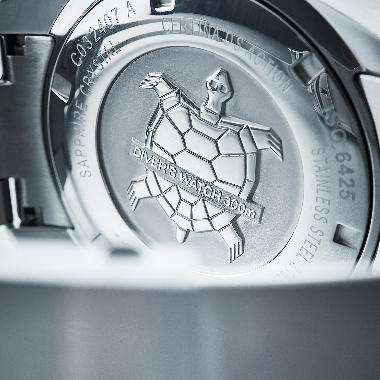 Корпус: Корпус из полированной/матовой нержавеющей стали. Люминесцентное покрытие на стрелках и разметке, однонаправленно вращающийся безель из анодированного алюминия, завинчивающаяся задняя крышка с логотипом Sea Turtle Conservancy, в виде черепахи.Сапфировое стекло антибликовое покрытие стекла, синий циферблат. Диаметр 43 мм. Водостойкость 300 м. Система DS.