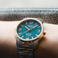 Корпус: Корпус из полированной/матовой нержавеющей стали с PVD - покрытием золотом. Зеленый циферблат с золотистыми стрелками и часовыми индексами. Сапфировое стекло. Диаметр 33 мм. Водостойкость 100 м. Система DS.