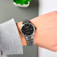 Корпус: Корпус из полированной/матовой нержавеющей стали. Сапфировое стекло, черный циферблат. Диаметр 28 мм. Водостойкость 100 м. Система DS.