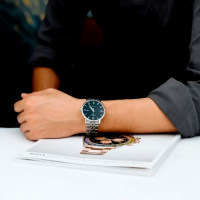 Корпус: Корпус из нержавеющей полированной/матовой стали. Чёрный циферблат. Стрелки и часовые индексы серебристого цвета с люминесцентным покрытием. Сапфировое стекло. Диаметр 39 мм. Водостойкость 100 м. Система DS.