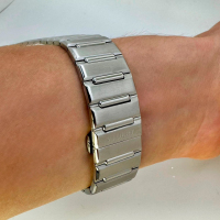Ремешок: Браслет выполнен из высококачественной стали с повышенной устойчивостью к коррозии, поверхность с матовой шлифовкой – сатинированием и полировкой до зеркального блеска. Раскладывающаяся застежка с кнопочной фиксацией.