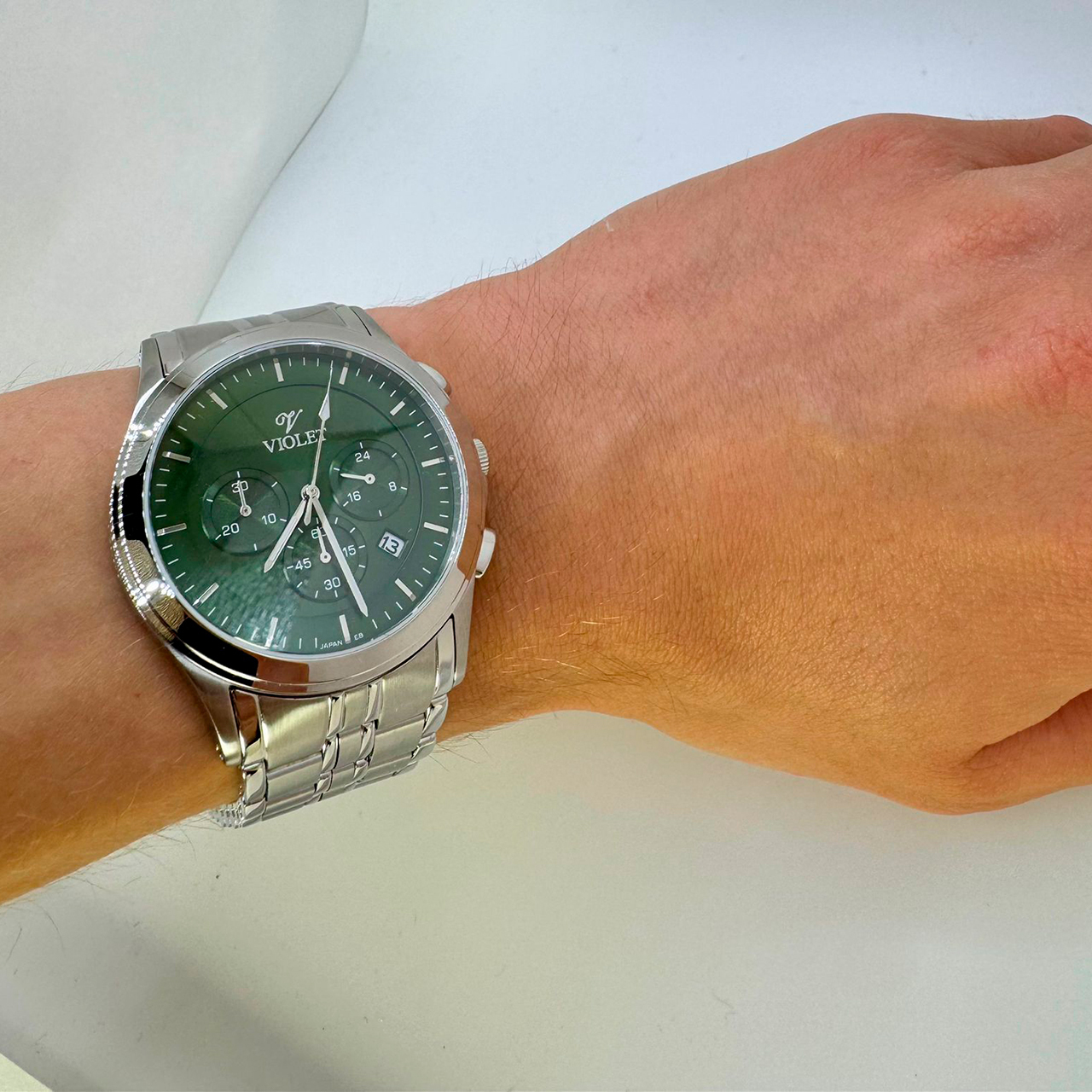 Корпус: Корпус выполнен из высококачественной стали с повышенной устойчивостью к коррозии, поверхность с матовой шлифовкой – сатинированием и полировкой до зеркального блеска. Зелёный циферблат. Накладные часовые индексы и стрелки выполнены из стали с покрытием. На стрелках покрытие SuperLuminova, которое обеспечивает подсветку в темное время суток. Сапфировое стекло устойчивое к возникновению царапин. Диаметр корпуса составляет: 40 мм. Водостойкость: WR 50 (мытье рук, дождь).