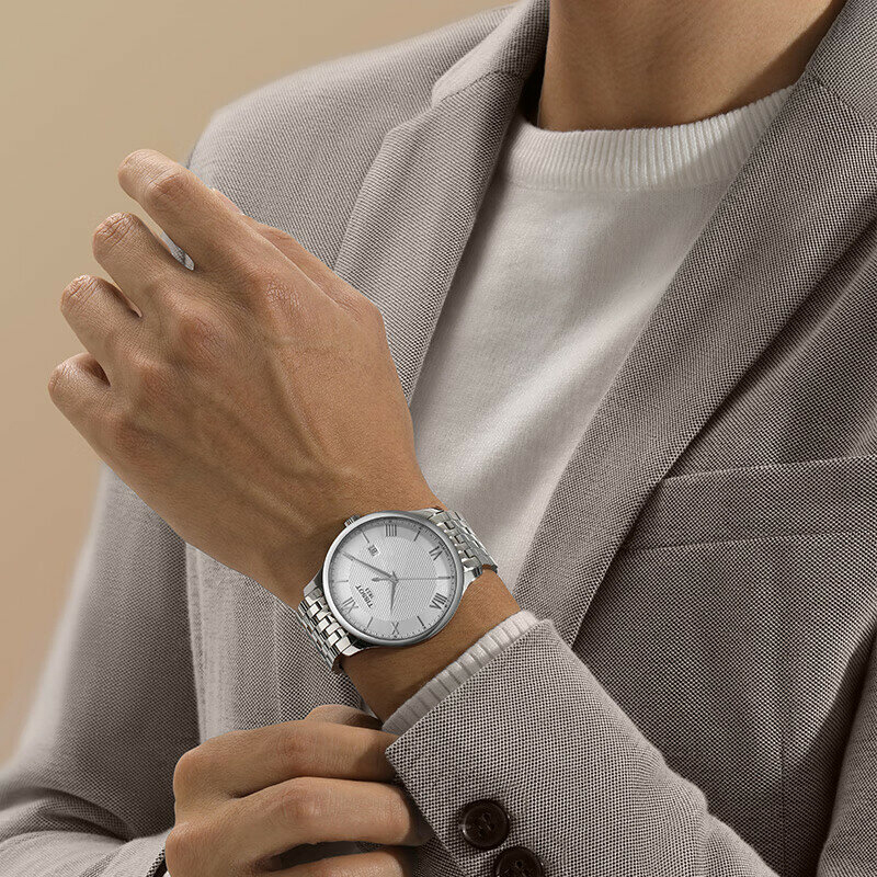 Корпус: Высококачественная нержавеющая сталь 316L с повышенной устойчивостью к коррозии, поверхности с матовой шлифовкой – сатинированием и полировкой до зеркального блеска. Серебристый циферблат украшают клиновидные стрелки в стиле Dauphine. Метки в виде римских цифр и штрихов. Надёжное сапфировое стекло. Рифленая заводная головка. Диаметр корпуса составляет 42 мм. Водозащита 30 м.