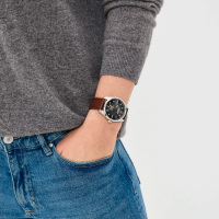 Ремешок: Кожаный ремешок коричневого цвета с прошивкой по краю, застежка из нержавеющей стали.