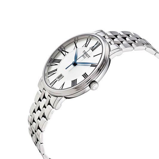 Корпус: Корпус выполнен из высококачественной стали с повышенной устойчивостью к коррозии, поверхности полировкой до зеркального блеска. Циферблат выполнен по технологии Sunray (солнечные лучи) с логотипом Tissot. Узкие листовидные стрелки в стиле Feuille синего цвета и часовые индексы в виде римских цифр чёрного цвета. Сапфировое стекло с антибликовым покрытием, устойчивое к появлению царапин, обладающее высокой прозрачностью. Рифленая заводная головка с логотипом. Диаметр корпуса составляет 40 мм. Водонепроницаемость: 50 м.