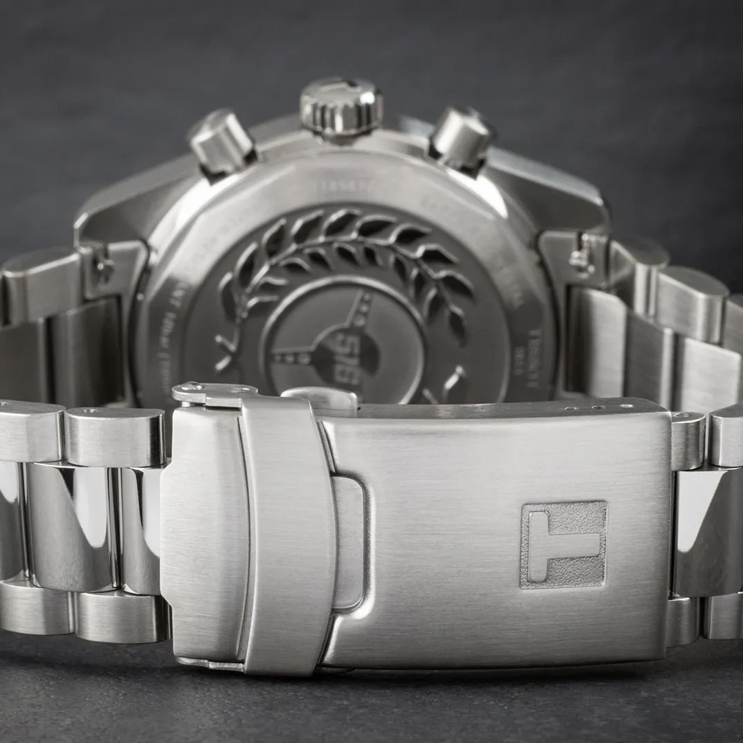 Ремешок: Браслет выполнен из стали с повышенной устойчивостью к коррозии, поверхность с матовой шлифовкой – сатинированием. Раскладывающаяся браслетная застежка с дополнительным защитным фиксатором украшена гравировкой с названием марки.