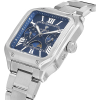 Функции: Центральные часовая, минутная и секундная стрелки. Число, день недели и индикатор фазы Луны вынесены на отдельные циферблаты.
