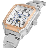 Функции: Центральные часовая, минутная и секундная стрелки. Число, день недели и индикатор фазы Луны вынесены на отдельные циферблаты.