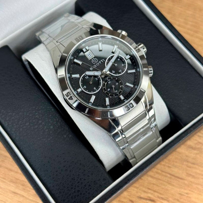 Функции: Индикация часов, минут и секунд при помощи центральных стрелок. Дата, хронограф и текущее время в 24-х часовом формате.