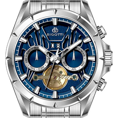 Корпус: Стильные мужские часы с частично скелетонизированным циферблатом. Корпус изготовлен из нержавеющей. Циферблат синего цвета. Часовые индексы и стрелки с люминесцентным покрытием. Прочное минеральное стекло обеспечит защиту часов от повреждений. Прочная задняя крышка. Завинчивающаяся заводная головка. Диаметр: 43 мм. Водонепроницаемость: 50 м.