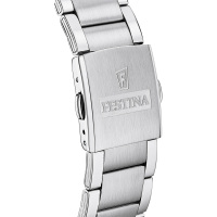 Ремешок: Стальной браслет с раскладывающейся застежкой, которая украшена фирменным логотипом Festina.