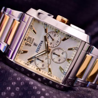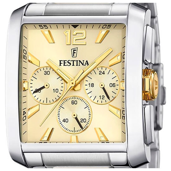 Ремешок: Надежный, прочный и элегантный браслет из нержавеющей стали с частичны PVD покрытием. Застёжка с системой блокировки, украшена фирменным логотипом Festina.