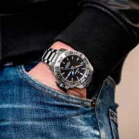Корпус: Ударопрочный корпус часов сделан из нержавеющей стали. Однонаправленный вращающийся безель из нержавеющей стали. Чёрный циферблат со стрелками и часовыми индексами в виде штрихов с нанесенным люминесцентным покрытием, которое светится в темноте после непродолжительной зарядки на свету. Сапфировое стекло устойчивое к возникновению царапин. Завинчивающаяся заводная головка с защитой. Диаметр: 46 мм. Водонепроницаемость: 200 м.