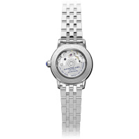 Корпус: Корпус круглой формы выполнен из нержавеющей стали марки 316L, поверхности с матовой шлифовкой и глянцевой полировкой. Циферблат из натурального перламутра. Аппликация римских цифр с покрытием цвета родия и стрелки с синей лакировкой. Инкрустация 6 бриллиантов 8/8 SI2 - SI1 весом 0,23 карата. Сапфировое стекло имеет повышенную устойчивость к возникновению царапин. Диаметр корпуса модели составляет 31 мм, толщина - 8,9 мм. Задняя крышка с прозрачным окном из сапфирового стекла. Водостойкость на глубине до 50 метров (5 бар/АТМ).