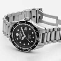 Корпус: Корпус из нержавеющей полированной/матовой стали. Вращающийся в одну сторону безель чёрного цвета. Чёрный циферблат с серебристыми стрелками и рисками. Сапфировое стекло, устойчивое к царапинам с антибликовым покрытием. Диаметр 44 мм. Водонепроницаемость 200 м, заводная головка завинчивается, уплотнители из резины защищают механизм от воды.