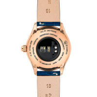 Корпус: Корпус модели выполнен из высококачественной стали 316L с повышенной устойчивостью к коррозии, поверхности с полировкой до зеркального блеска и PVD-покрытием. На синем циферблате 8 бриллиантов. Стрелки и часовые индексы позолоченные. Сапфировое стекло имеет антибликовое покрытие, что позволяет циферблату быть хорошо читаемым и видимым даже в самые солнечные дни. Диаметр: 36 мм. Водозащита: 50 м.