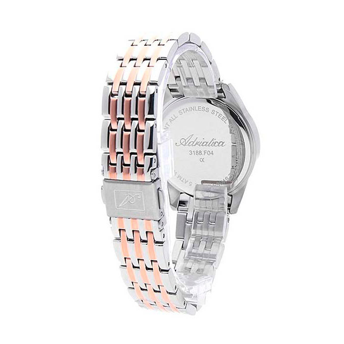Ремешок: Браслет выполнен из нержавеющей стали с частичным розовым PVD покрытием. Браслетная раскладывающаяся застежка с гравировкой логотипа.