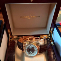 Корпус: Розовое золото 18 карат, бежевый циферблат со светло-серым центром, сапфировое стекло с антибликовым покрытием. Диаметр 41 мм, водонепроницаемость 200 метров.