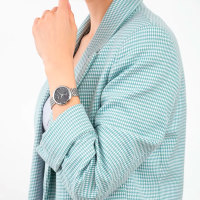 Корпус: Круглый корпус выполнен из полированной нержавеющей стали. Циферблат с метками в виде точек из фианитов (кубический цирконий, Cubic Zirconia, CZ – синтетический минерал, обладающий блеском и твёрдостью, близкими к алмазу и сапфировому стеклу) выполнен по технологии Sunray (солнечные лучи). Минеральное стекло с сапфировым покрытием. Диаметр корпуса составляет 34 мм, толщина 7 мм. Водостойкость WR 30 (мытье рук, дождь).