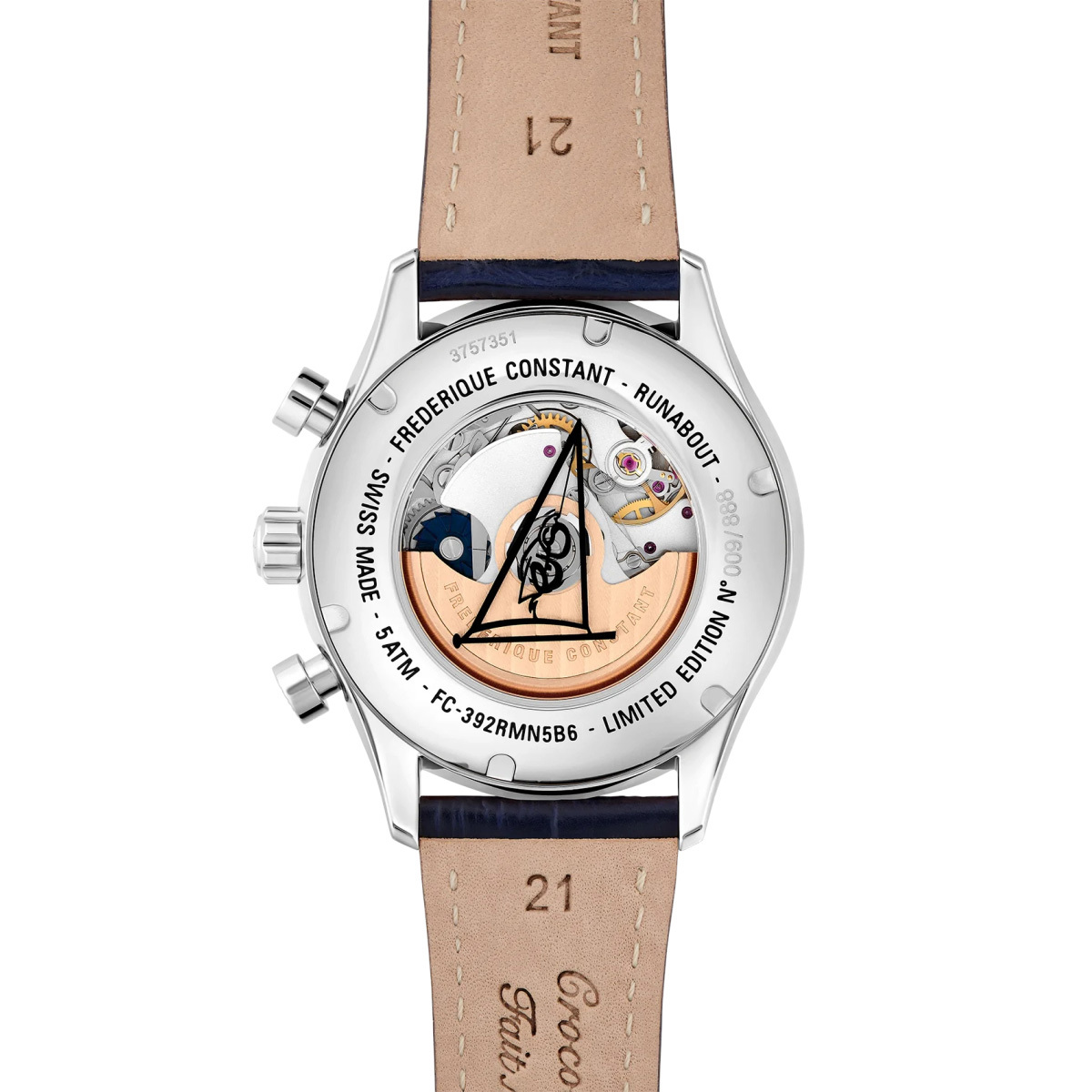 Корпус: Корпус выполнен из высококачественной стали с полировкой до зеркального блеска. Циферблат синего цвета. Полированные стальные стрелки и часовые индексы покрыты люминесцентным составом SuperLuminova. Сапфировое стекло устойчивое к царапинам с антибликовым покрытием. Заводная коронка украшена рельефной эмблемой марки, кнопки хронографа с насечкой в стиле "парижские гвозди". Задняя крышка с памятной картинкой Runabout RHS на прозрачном окне имеет резьбовое соединение с корпусом. Диаметр: 42 мм. Водозащита: 50 м.