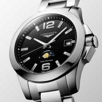 Корпус: Нержавеющая сталь. Циферблат чёрный, серебристые стрелки, риски и арабские цифры. Сапфировое стекло с антибликовым покрытием. Водонепроницаемость 300 метров. Размер 34 мм.