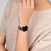 Корпус: Нержавеющая сталь с частичным PVD-покрытием розового золота. Коричневый циферблат с золотистыми стрелками и часовыми индексами, декорирован 12 бриллиантами. Инновационное металлизированное сапфировое стекло. Рифленая заводная головка. Диаметр 30 мм. Водонепроницаемость 50 метров.