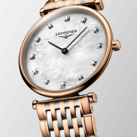 Корпус: Нержавеющая сталь + PVD-покрытие из розового золота, сапфировое стекло, 12 бриллиантов на циферблате. Размер 29 мм, водонепроницаемость 30 метров. Циферблат – перламутровый белый.