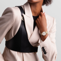 Корпус: Нержавеющая сталь с PVD покрытием золотом, цвет желтый, водонепроницаемость 30 метров, стекло сапфировое. Диаметр 29,00 мм. Циферблат белый.