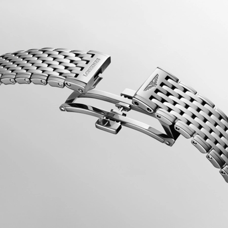 Ремешок: Браслет выполнен из высококачественной стали 316L с повышенной устойчивостью к коррозии, поверхность с матовой шлифовкой – сатинированием и полировкой до зеркального блеска. Раскладывающаяся браслетная застежка “бабочка” с кнопками двойной фиксации.