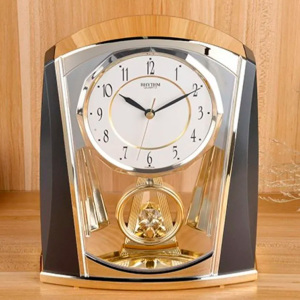 Механизм: Японский кварцевый механизм RHYTHM. Настольные часы с маятником. Замедленное, комфортное движение маятника. Ход секундной стрелки — дискретный (тикают).