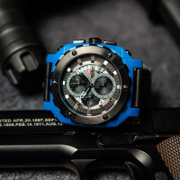 Ремешок: Ремешок из натуральной кожи чёрного цвета с перфорацией защищает кисть от запотевания, имеется двойной тренчик, который надежно зафиксирует его кончик. Каждые часы бренда Chronoforce имеют уникальную упаковку, в виде мотоциклетного шлема.