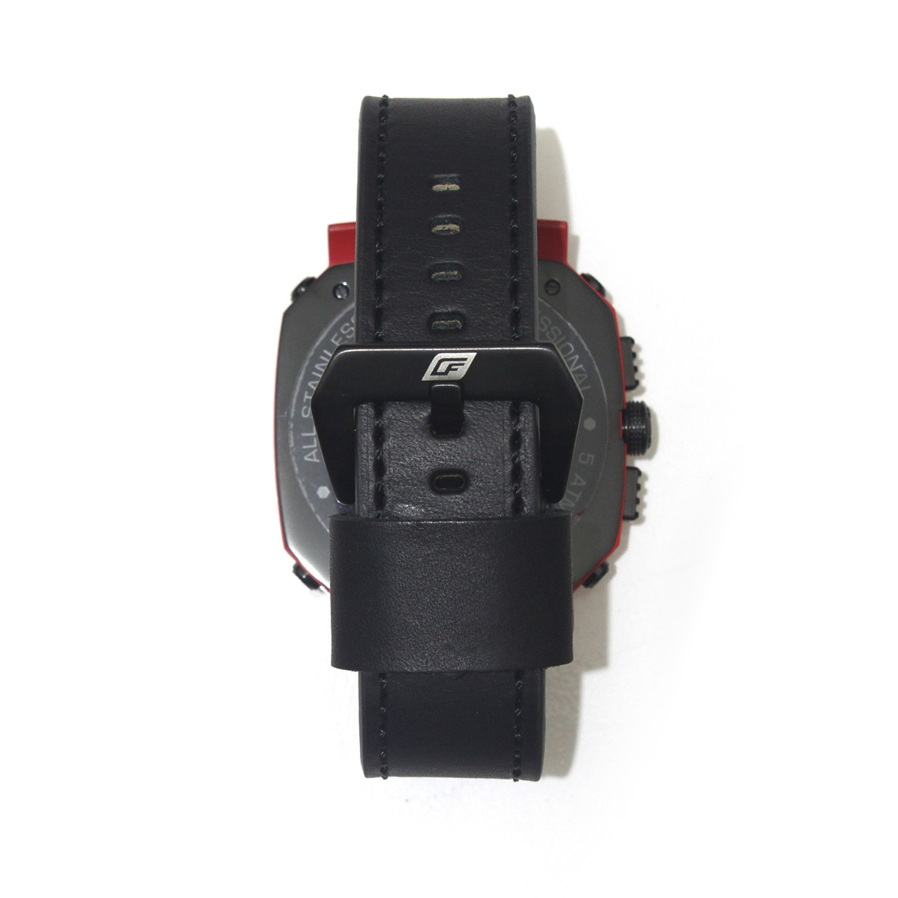 Ремешок: Ремешок из натуральной кожи чёрного цвета с перфорацией защищает кисть от запотевания, имеется двойной тренчик, который надежно зафиксирует его кончик. Каждые часы бренда Chronoforce имеют уникальную упаковку, в виде мотоциклетного шлема.