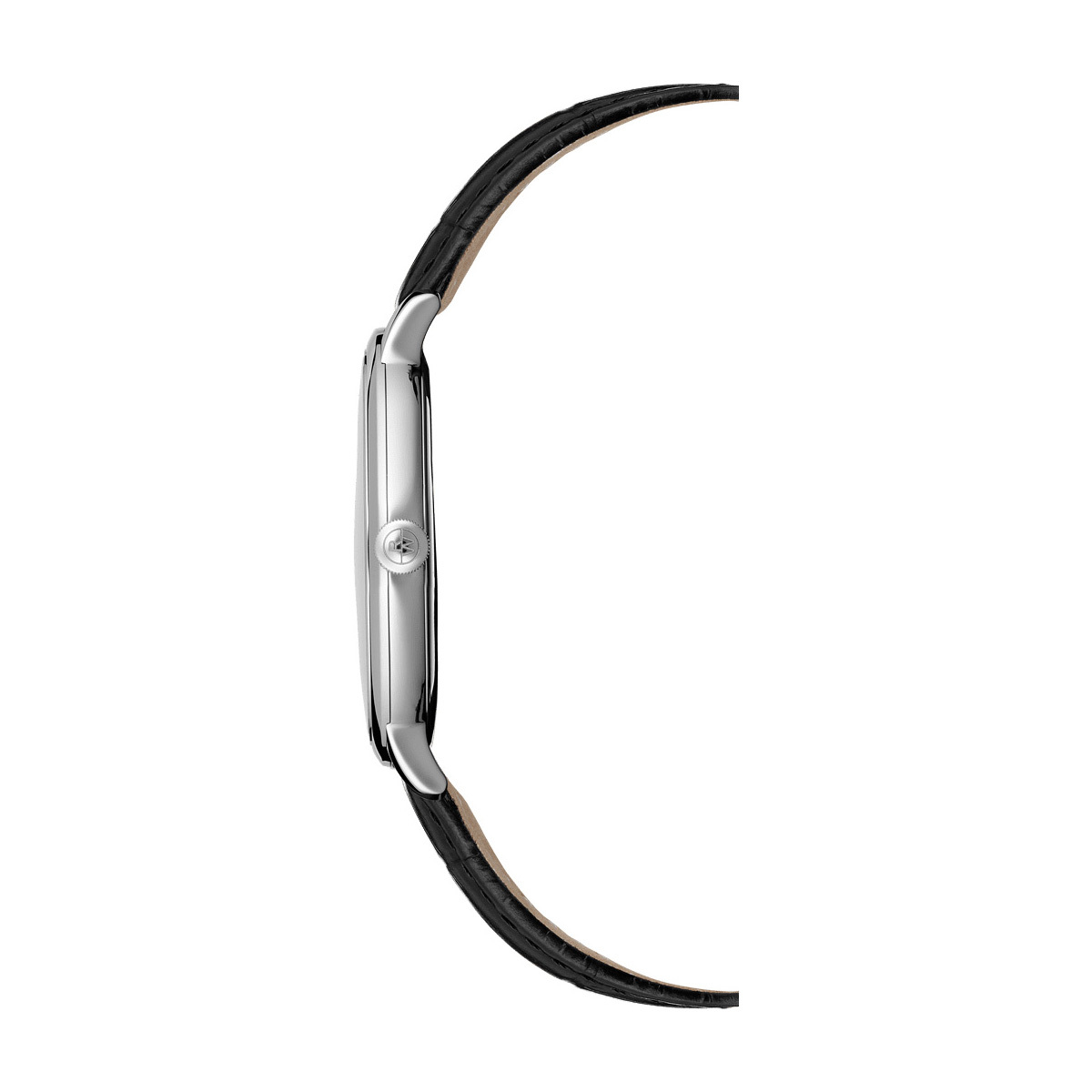 Ремешок: Кожаный ремешок чёрного цвета с классической застежкой.