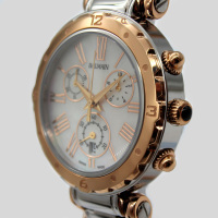 Корпус: Нержавеющая сталь с PVD-покрытием из розового золота. Перламутровый циферблат. Сапфировое стекло. Заводная головка украшена камнем в форме кабошона. Диаметр 38 мм. Водостойкость 50 м.
