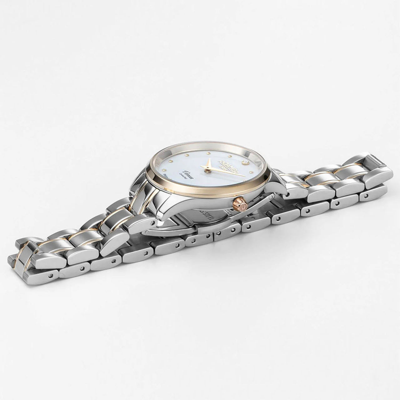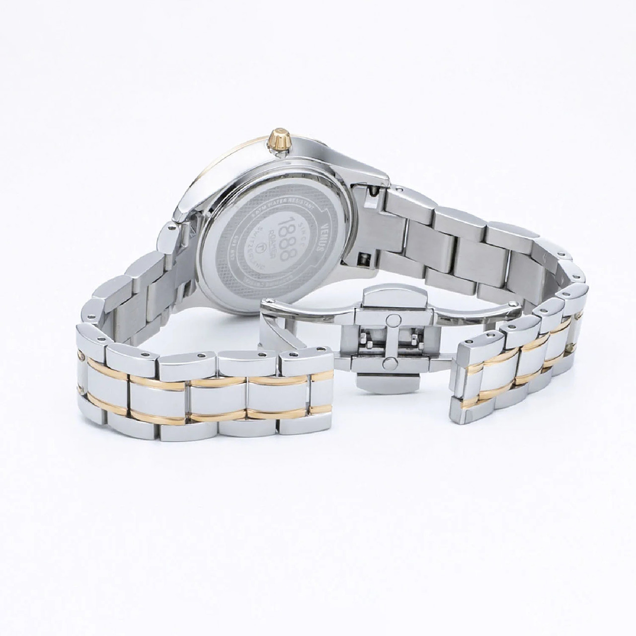Ремешок: Браслет выполнен из высококачественной стали, марки 316L с частичным PVD - покрытием жёлтого золота, поверхность с полировкой до зеркального блескаю. Раскладывающаяся застежка с кнопочной фиксацией.