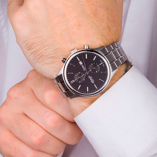 Ремешок: Браслет из нержавеющей стали, поверхность с матовой шлифовкой - сатинированием и полировкой. Браслетная раскладывающаяся застежка с дополнительным защитным фиксатором, гравировка с названием марки и ее эмблема.