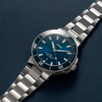 Корпус: Многокомпонентный корпус из нержавеющей стали, синий керамический ободок с минутной шкалой. Сапфировое стекло, выпуклое с обеих сторон, внутреннее антибликовое покрытие. Индексы и стрелки покрыты составом Superluminova. Синий циферблат. Завинчивающаяся прозрачная задняя крышка корпуса с минеральным стеклом. Завинчивающаяся заводная головка из нержавеющей стали. Диаметр 43,5 мм. Водонепроницаемость 300 метров.