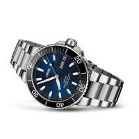 Корпус: Многокомпонентный корпус из нержавеющей стали, керамический ободок чёрного цвета с минутной шкалой. Сапфировое стекло, выпуклое с внутренним антибликовым покрытием. Синий циферблат Sunray, стрелки и накладные часовые метки с родиевым покрытием и белым Superluminova. Завинчивающаяся задняя крышка со специальной гравировкой. Завинчивающаяся заводная головка из нержавеющей стали. Диаметр 45,5 мм. Водонепроницаемость 500 метров.