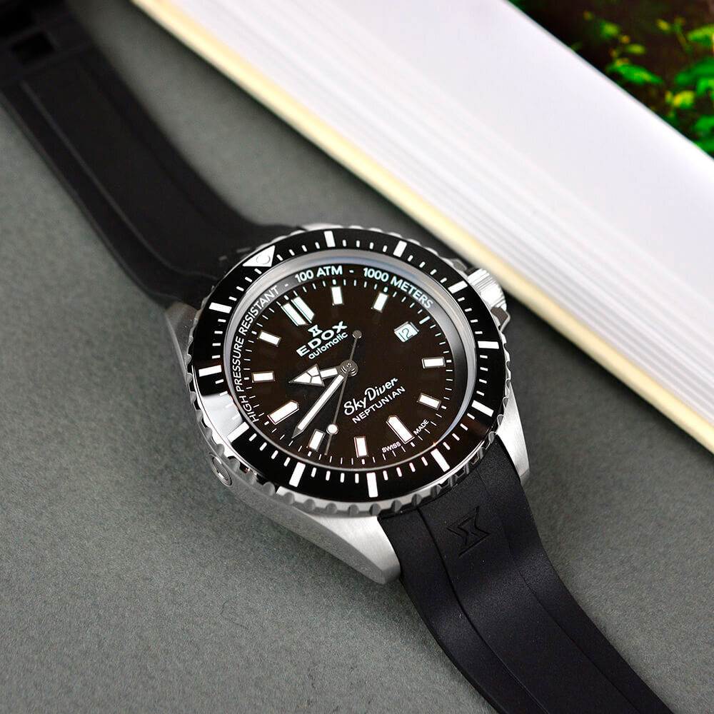 Корпус: Корпус из высококачественной нержавеющей стали, керамический безель чёрного цвета. Чёрный циферблат. Часовые индексы и стрелки стальные, полированные с покрытием Super-LumiNova®. Сапфировое стекло с антибликовым покрытием. Однонаправленный безель вращается со щелчками в направлении против хода стрелок, рельефная поверхность с гравированной разметкой в виде больших цифр. Завинчивающаяся заводная головка с защитой. Диаметр: 44 мм. Водонепроницаемость: 1000 м.