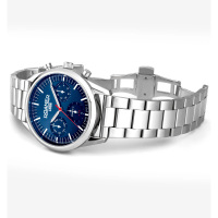 Ремешок: Браслет из нержавеющей стали с литыми звеньями, браслетная застежка с тройным сложением – «бабочка». В комплект часов входит дополнительный кожаный ремешок, который вы можете заменить с помощью удобной кнопки, без необходимости использования инструмента. Часы поставляются в специальной подарочной упаковке.