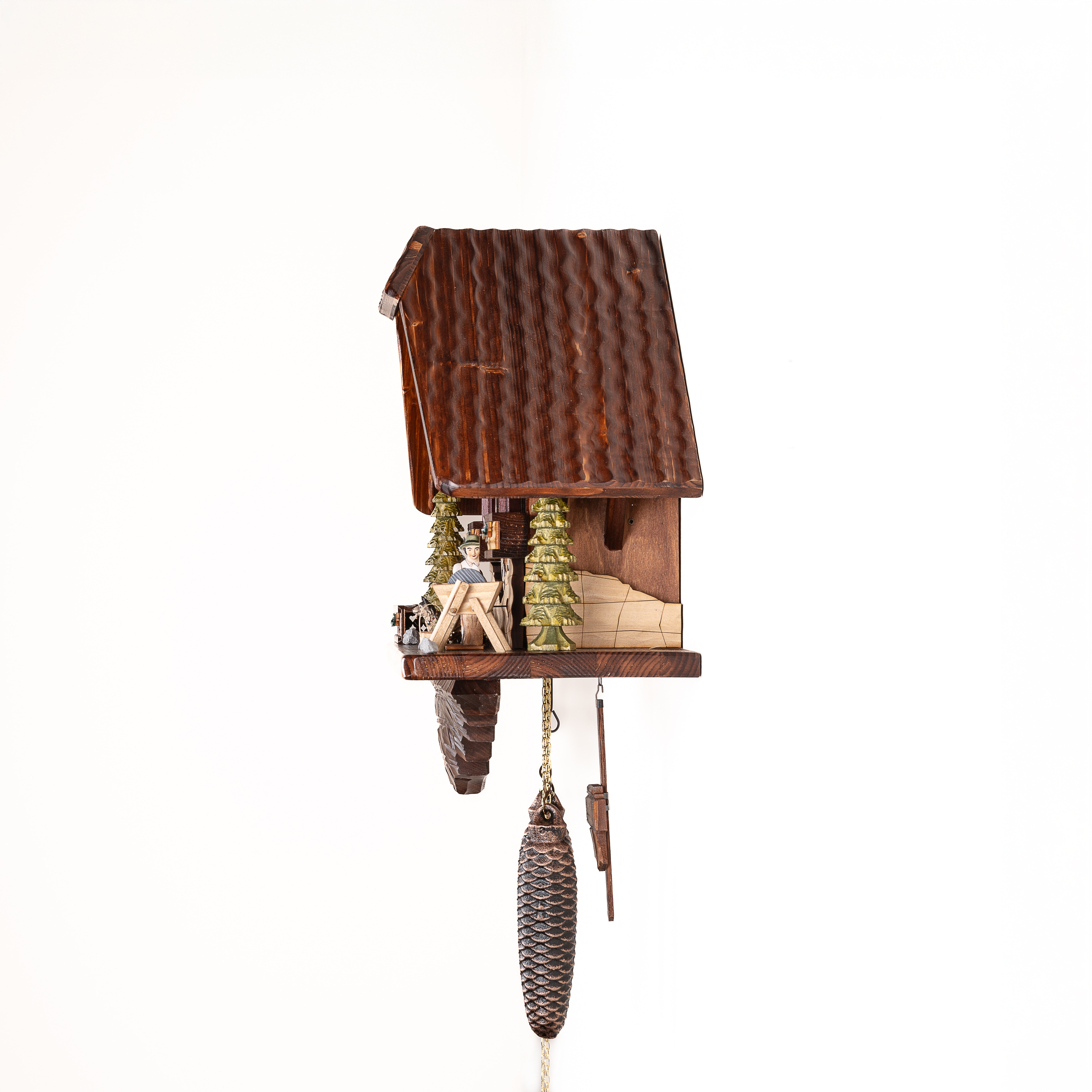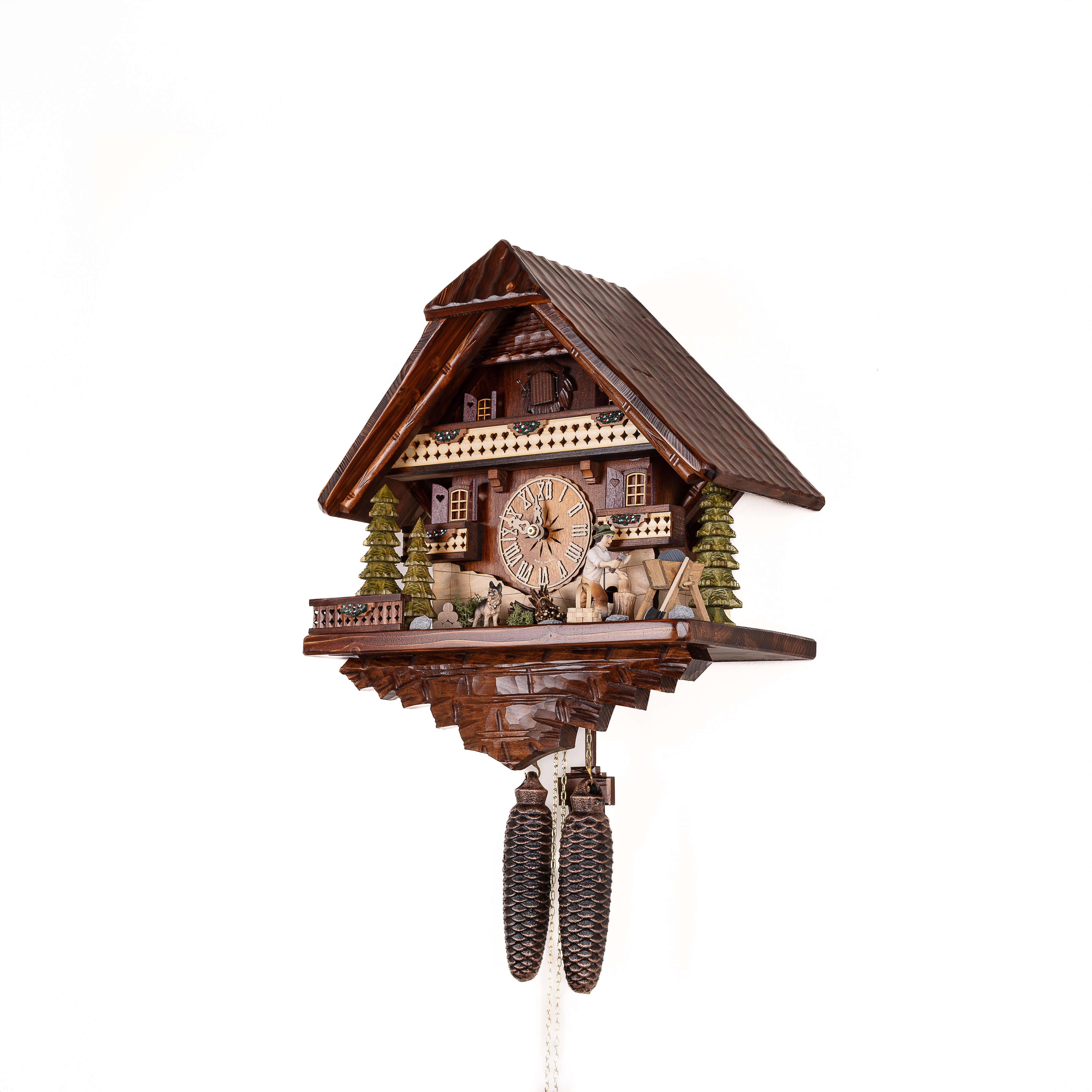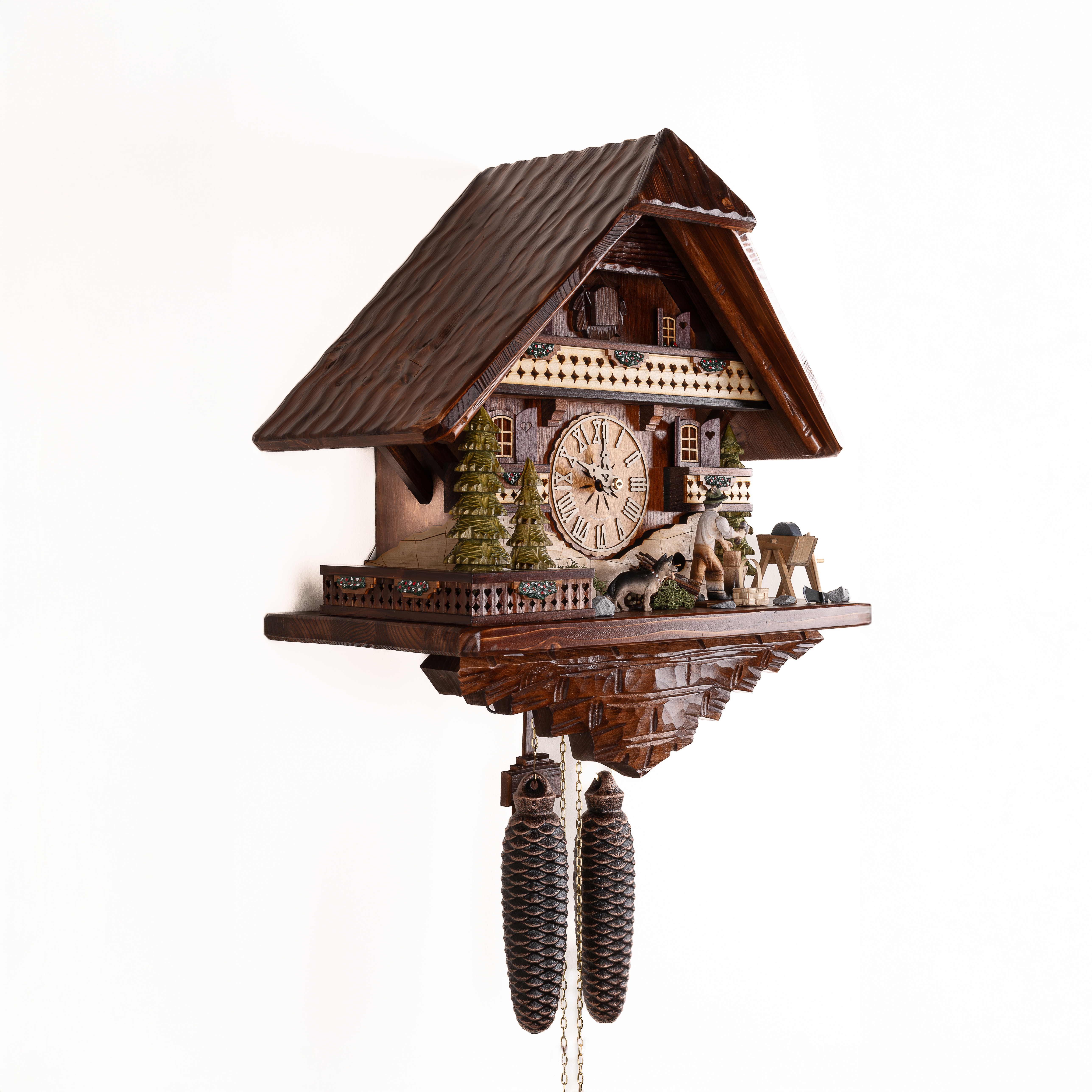 Механизм: Механические часы с кукушкой, которые работают от гирь на цепной тяге. Сделан на фирме SBS-Feintechnik GmbH & Co. KG Германия. Шварцвальдский дом с подвижным дровосеком. Запас хода на 8 дней. Ручное отключение звука. В каждые пол часа кукушка появляется из своего домика, наклоняется и воспроизводит звук кукушки (ку-ку) один раз, в каждый полный час она кукует столько раз сколько показывают стрелки на часах. Одна гиря отвечает за ход часов, вторая за работу механизма кукушки и дровосека. В то время пока кукушка кукует дровосек колет дрова и продолжает это делать пока кукушка не остановится.