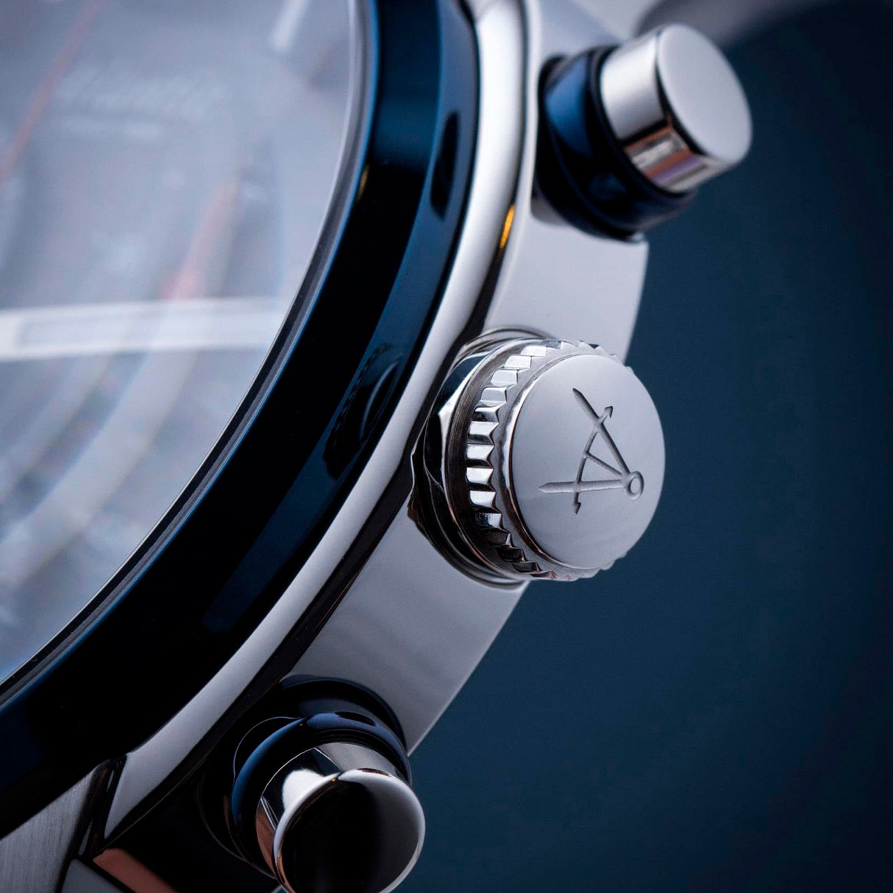 Корпус: Корпус выполнен из нерж. стали 316L, поверхности с матовой шлифовкой (сатинирование) и полировкой до зеркального блеска. Циферблат синего цвета с рельефной поверхностью, аппликация часовых индексов. Светонакопительное покрытие на стрелках и разметке циферблата. Сапфировое стекло с повышенной устойчивостью к возникновению царапин. Безель - PVD-покрытие синего цвета. Диаметр корпуса составляет: 46 мм. Водостойкость: 100 метров (10 АТМ).
