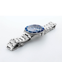 Корпус: Корпус из нержавеющей стали с синим однонаправленным вращающимся безелем обрамляет циферблат. Синий циферблат с солнечными лучами и увеличенной апертурой даты. Стальные накладные часовые метки и стрелки имеют покрытие Superluminova для оптимальной читаемости в условиях низкой освещенности. Устойчивое к царапинам сапфировое стекло с антибликовым покрытием. Завинчивающаяся заводная головка с защитой. Диаметр: 43 мм. Водозащита: 200м.
