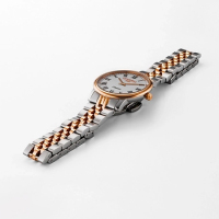 Ремешок: Браслет из высококачественной нержавеющей стали с повышенной устойчивостью к коррозии, поверхности с матовой шлифовкой – сатинированием и полировкой до зеркального блеска с частичным IP покрытием из розового золота. Раскладывающаяся стальная застежка "бабочка" .