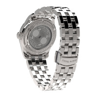Корпус: Нержавеющая сталь. Перламутровый синий циферблат, украшен декоративным узором - гильоше. Сапфировое стекло, устойчивое к механическим повреждениям. Механизм усложнен функцией – индикатором фазы луны, расположенной в районе двенадцатичасовой отметки. Диаметр 34 мм. Водозащита 100 м.